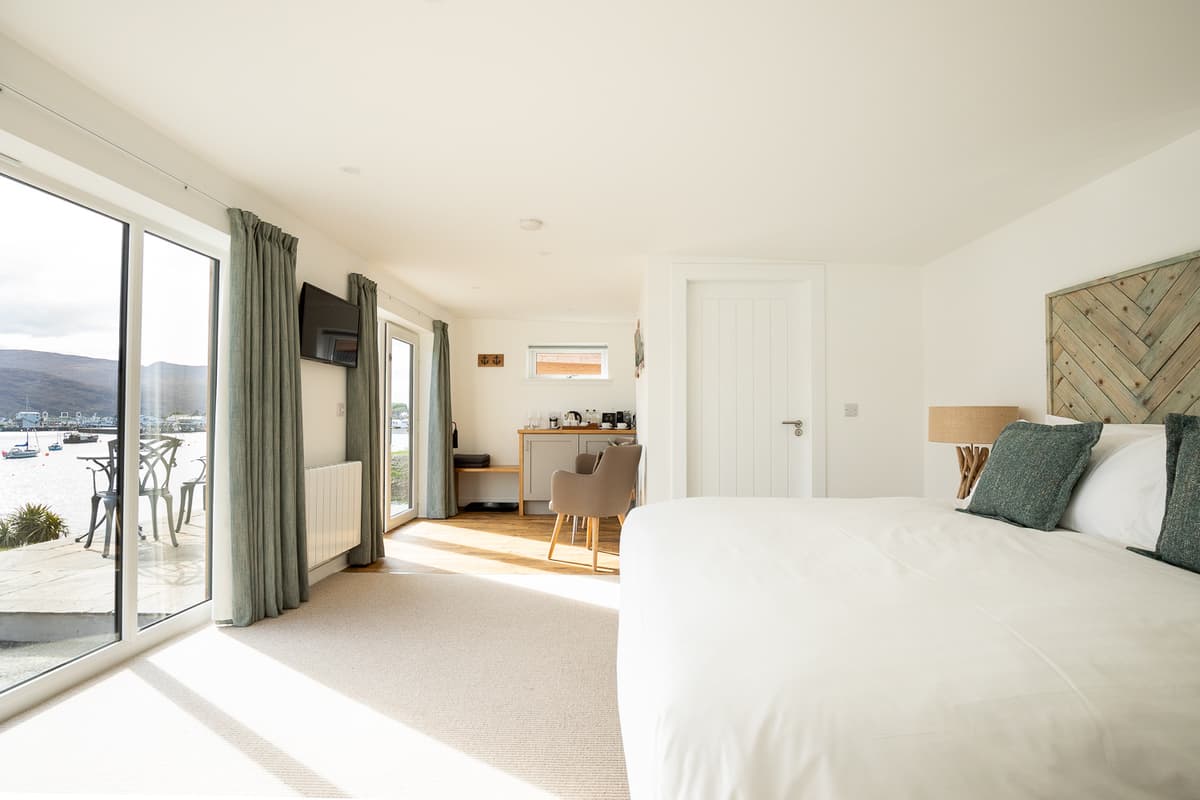 Each cabin has its own private terrace with outdoor seating offering exceptional views of Loch Broom, the surrounding hills and the bustling harbour with its constant flow of boats. If you're lucky you might see Sammy the seal or a passing pod of dolphins.